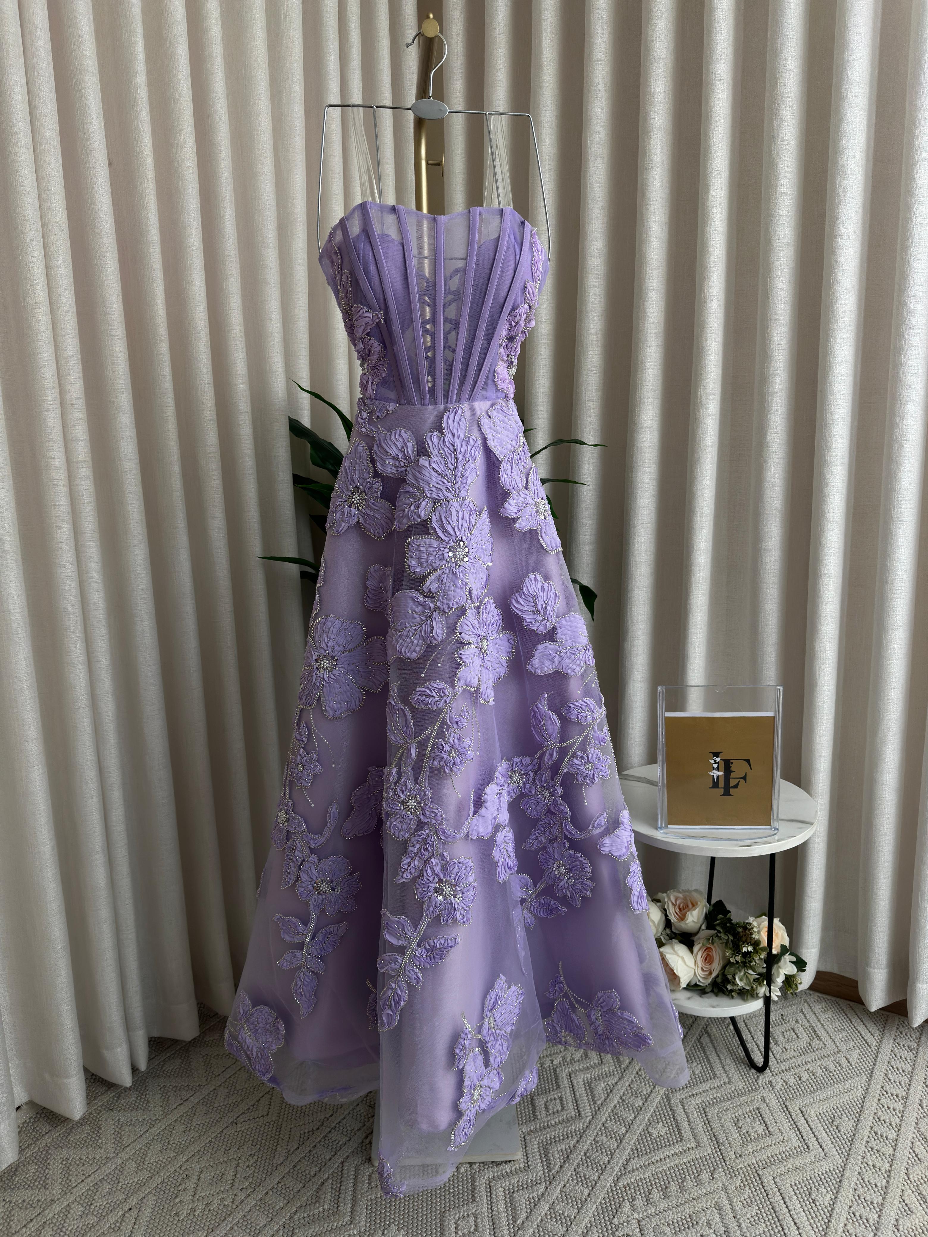 فستان سهرة "برنسيس" سماوي فاتح - قصة "كورسييه" مطرزة بالكريستال - مثالي للخطوبة والزفاف