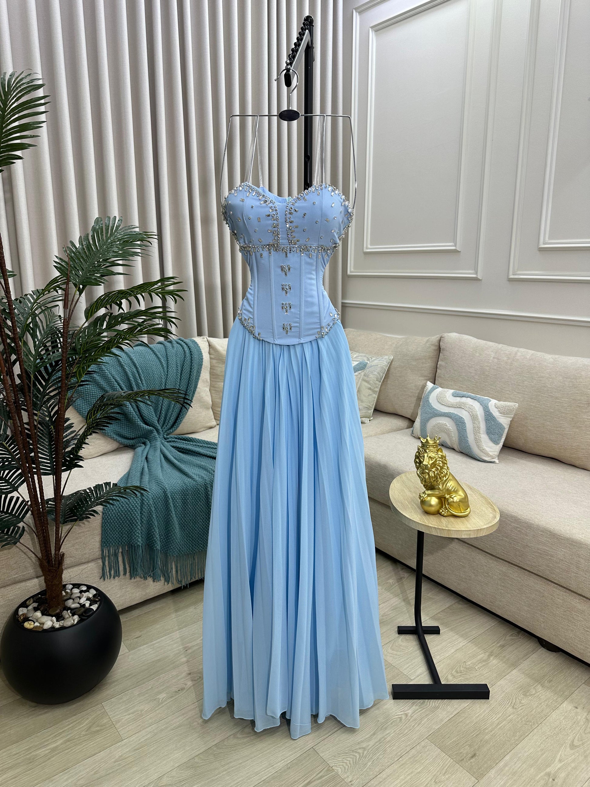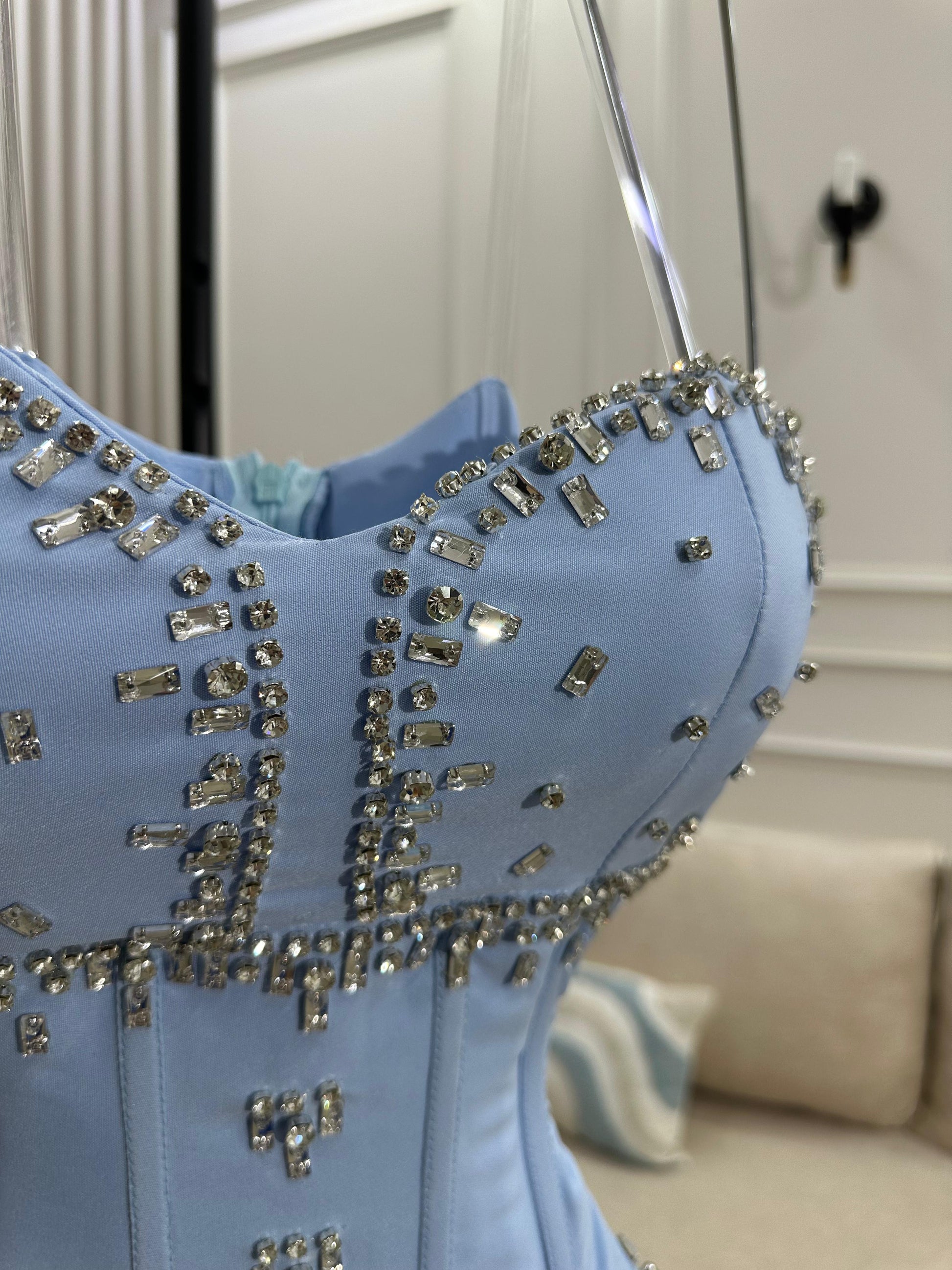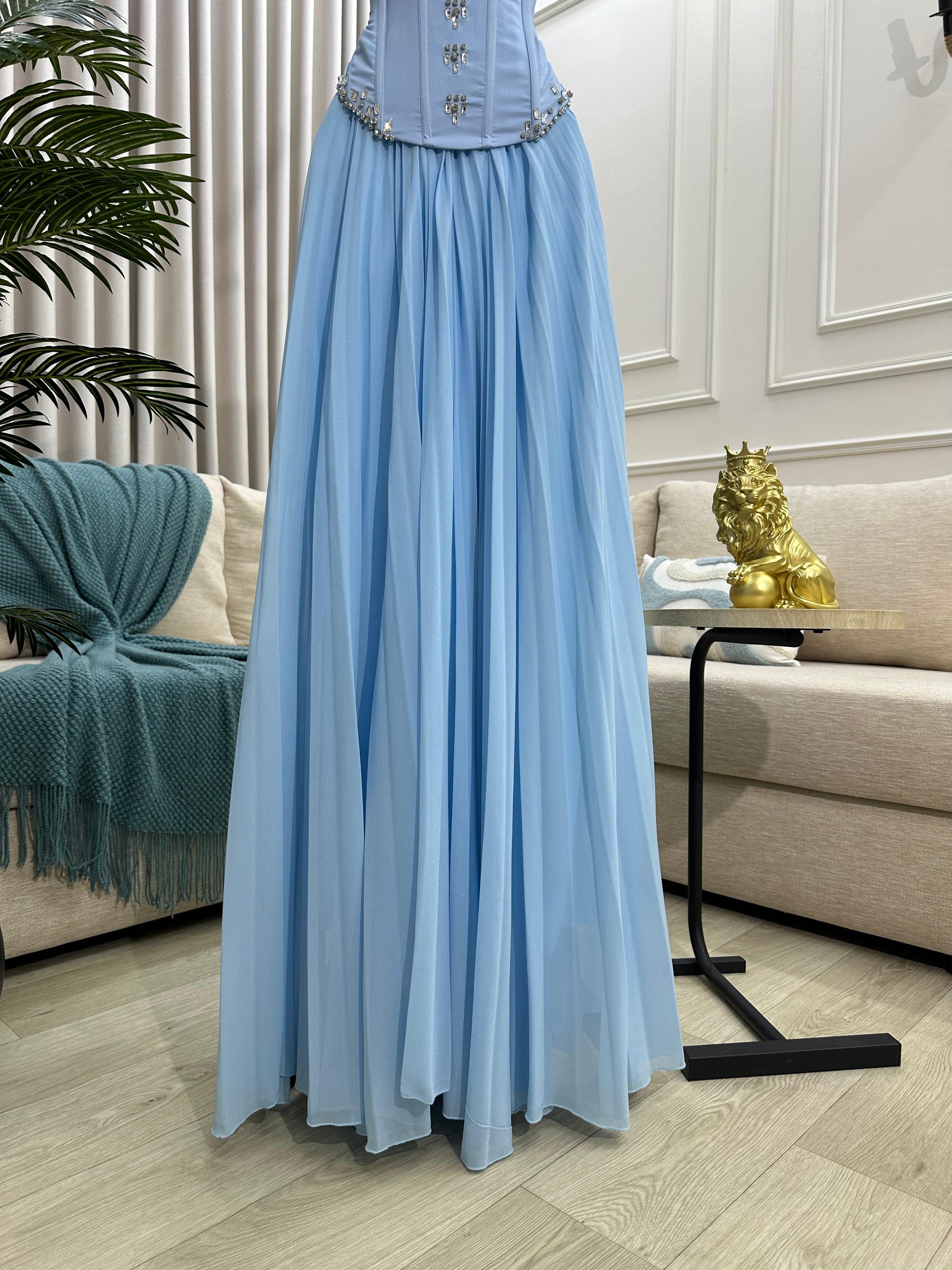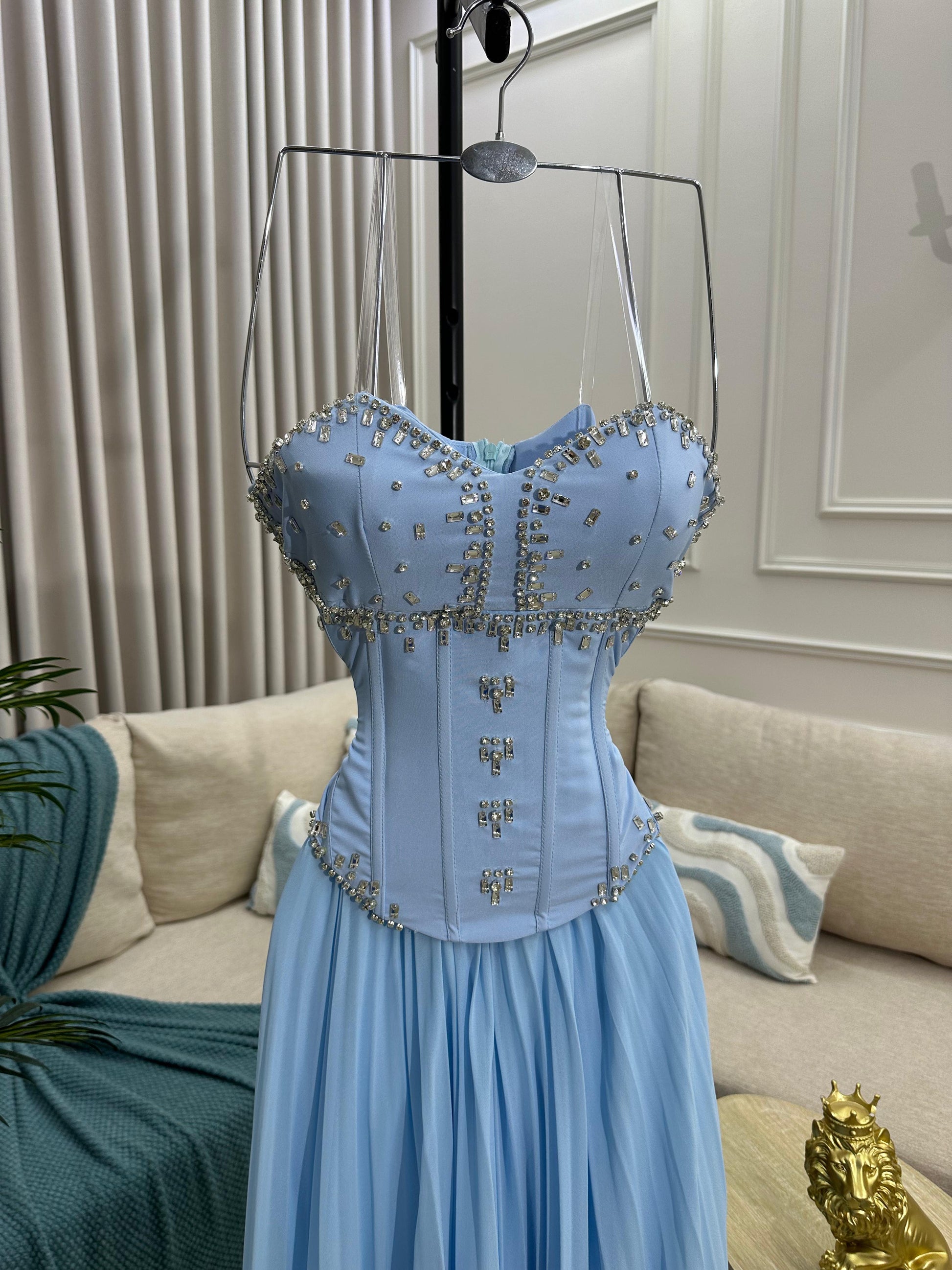 فستان سهرة "برنسيس" سماوي فاتح - قصة "كورسييه" مطرزة بالكريستال - مثالي للخطوبة والزفاف