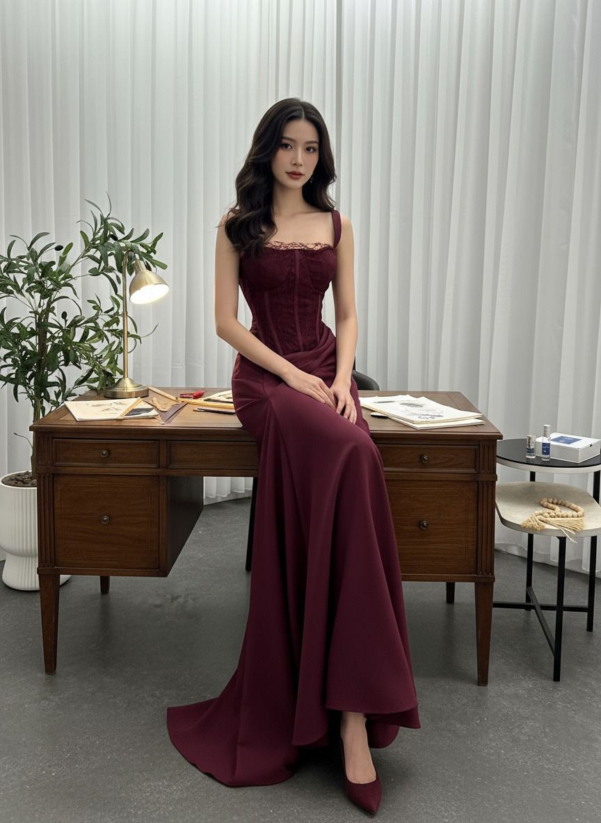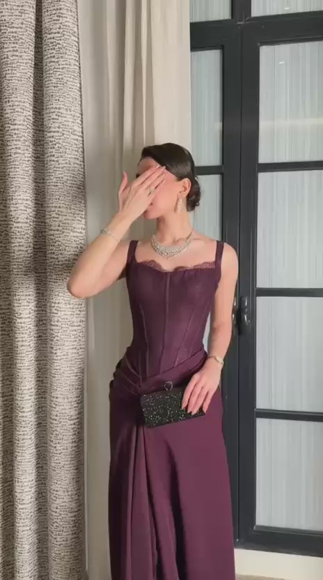 فستان سهرة بلون المارون (العنابي) الأنيق