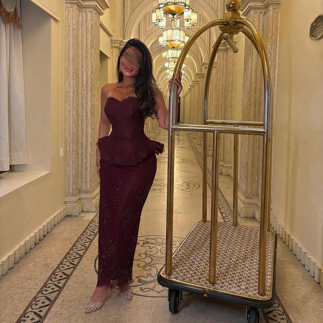 فستان سهرة عنابي ملكي فخم - قصة كورسييه وزم (ببلوم) - مثالي للمناسبات الكبيرة والزواجات