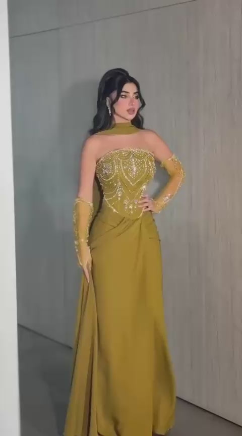 فستان سهرة فخم - لون أصفر خردلي ملكي